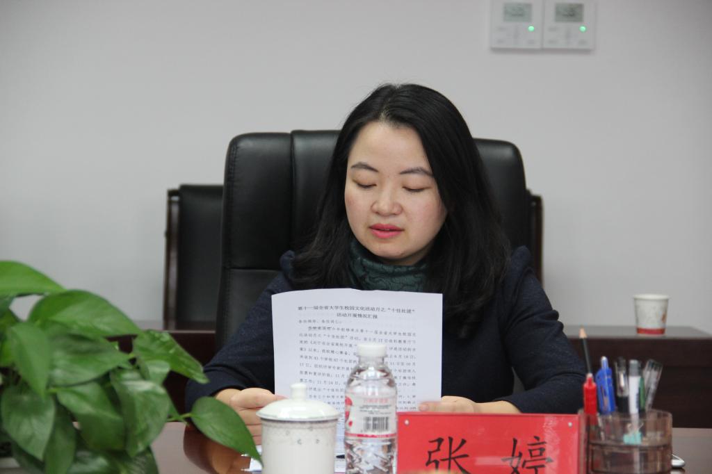 11月24日,第十一届全省大学生校园文化活动月之“十佳社团”终审评审会于贵州师范学院信息楼1011正式召开。贵州省委教育工委副书记赵延昌、教育厅社政处副处长赵祥、贵州师范学院党委书记陈扬、贵州大学宣传部长杨楠、贵州师范大学团委书记陈贵平、贵州民族大学宣传部长黄平、贵州财经大学团委书记雍新艳、贵州师范学院团委书记张婷参加了此次会议。会议由邹晓青主持。