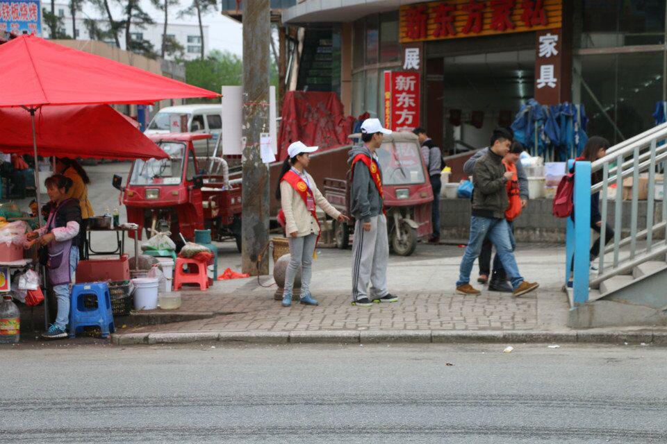4月26日,为了提高我校学生的安全意识,培养大家遵守交规,过马路走天桥的习惯,校学生会组织成立了一支志愿服务队利用课余时间做临时交通秩序维护员,以此倡导行人过马路走天桥。