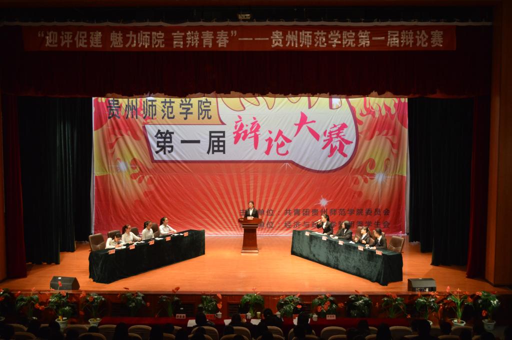 4月9日,我校第十届“多彩校园 闪亮青春”校园文化活动月之贵州师范学院第一届大学生辩论赛决赛在演播厅举办,此次辩论赛以“迎评促建 魅力师院 言辩青春”为主题。科研处处长金凤﹑发展与规划处处长姜东﹑组织部部长伍燕﹑物电学院党委副书记何毅担任了此次比赛评委。经济与政治学院院长程艳萍﹑党委书记周永杰﹑党委副书记张彬、校团委老师寇源、张维域观看了此次比赛。