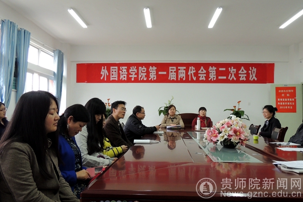 为响应贵州师范学院“两代会”的号召,传达校“两代会”精神。4月8日下午两点,外国语学院基层党委在第六会议室召开了外国语学院第一届两代会第二次会议,外国语学院党委书记张瑶、院长余学军、副院长罗泳及学院全体教职工参加了会议。
