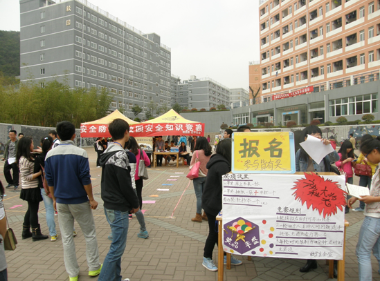 为了提高学生自我防卫能力,建设“安全和谐”校园。我校围绕有关安全热点问题,并根据本校实际情况于2014年3月19日10:30——13:30在奋斗广场举行“安全防暴,校园安全知识竞赛”活动。本次活动由校团委主办、大学生联合会承办,全校师生共同参与。