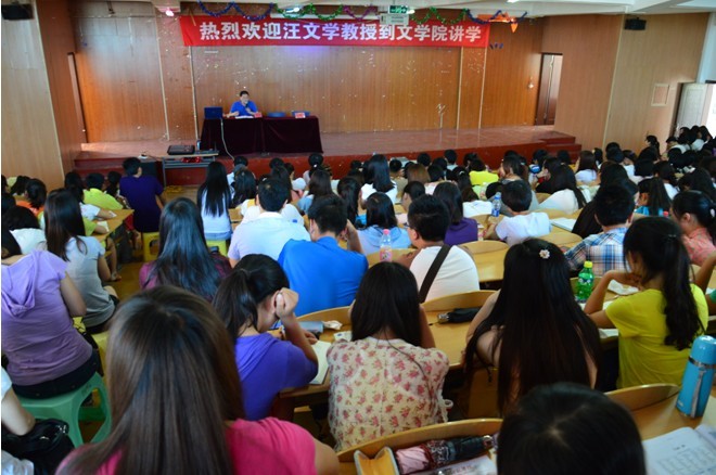 汪教授深刻剖析经济发展下人们生活观念的转变,从以前关心温饱问题到现如今对精神层面的满足,诠释出对“游”的动因,向大家展示出当今社会人们对精神文化需求的日益提升。并借此阐述了人类对自由的渴望,解说了“游”的深刻意义。人们对“游”的目的也是追求自由与反对束缚。除此,汪教授也分析了家庭矛盾的弊端,“过度恋家会趋于堕落”,并用自我的实例说明,“回家时,就不再愿意读书写字了。过了几天后发现自己的身份是便会慌张起来”。这种务实认真的学者风度,带给了全场师生深刻的震撼力。