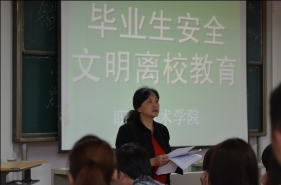 6月7日上午,毕业生文明离校教育在学校宁静楼537教室举行。会上,学院党委书记侯晓薇就毕业生文明离校教育、诚信还款等问题对毕业生提出了具体要求。毕业班辅导员潘素英、杨辉对办理离校手续等方面做了具体安排。