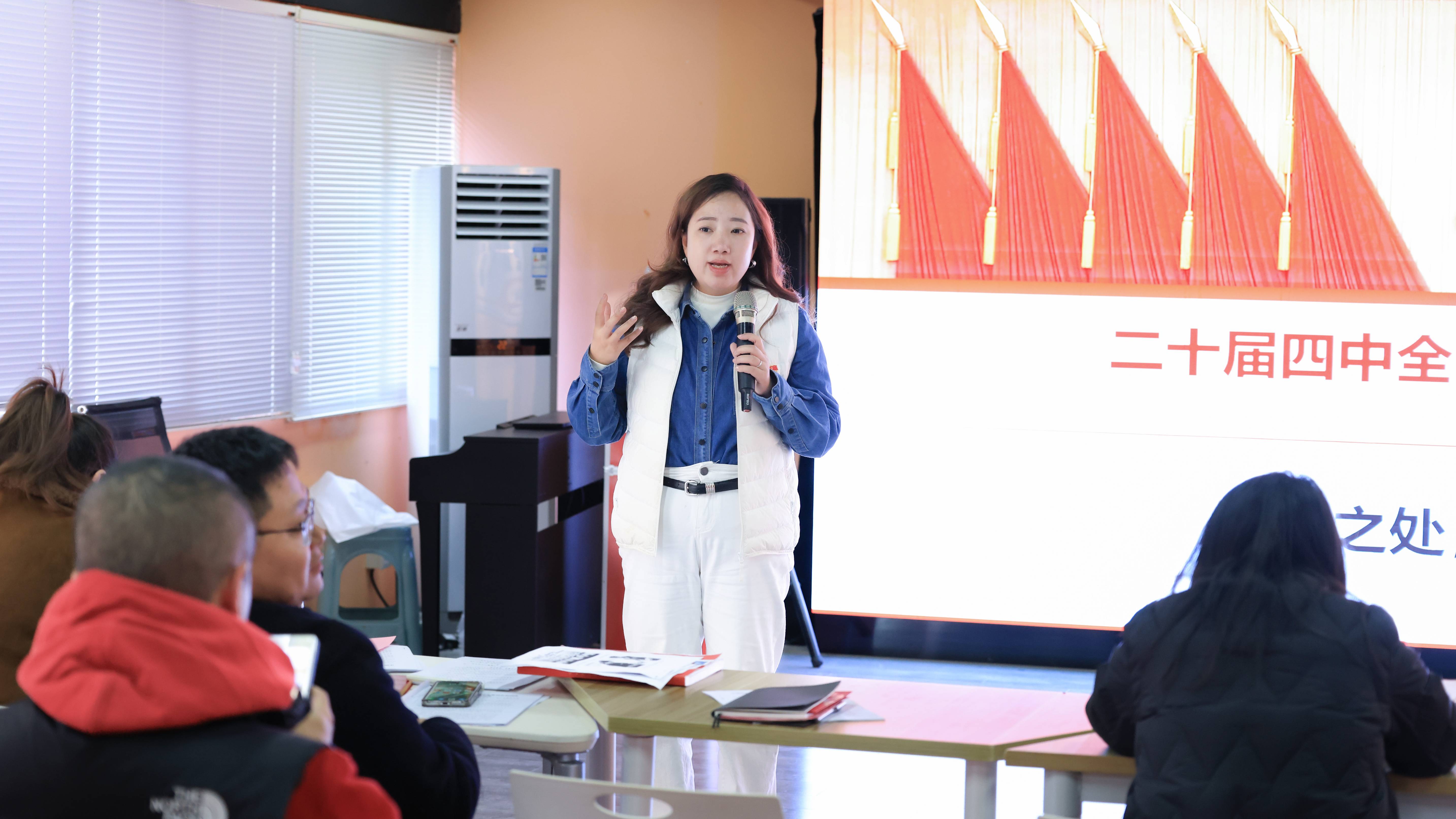 随后,党支部书记周煜围绕党的二十届四中全会精神作专题宣讲,系统阐释全会的重大意义、精神实质与实践要求,强调要把学习贯彻全会精神与推动学校高质量发展紧密结合,切实把学习成果转化为推动工作的实际成效。勉励全体党员要以此次学习为契机,持续深化理论武装,增强政治自觉和行动自觉,立足岗位履职尽责,在学校事业发展中展现党员担当。