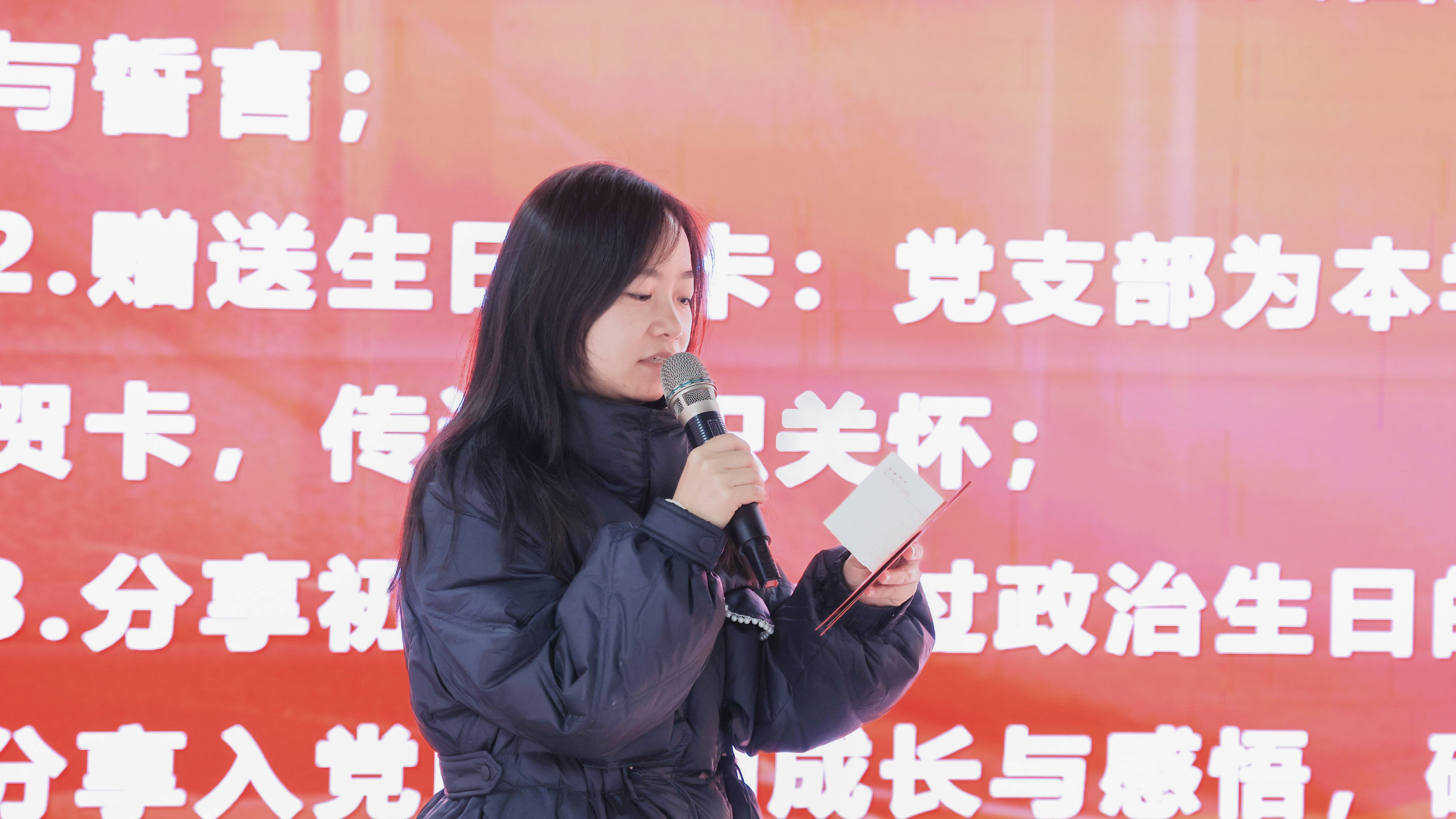 宣讲过后,支部为党员举行了庄重而温馨的“政治生日”仪式。全体党员面向党旗,重温入党誓词,回顾入党初心。同时还为过“政治生日”的党员赠送了定制贺卡,传递组织的关怀与激励。党员代表结合岗位实际分享了入党以来的成长感悟,表达了坚守初心、担当使命的坚定决心。
