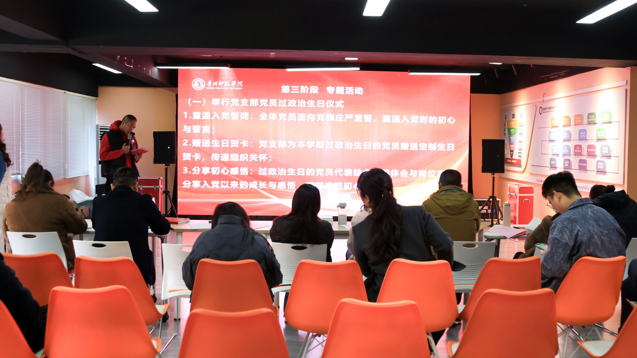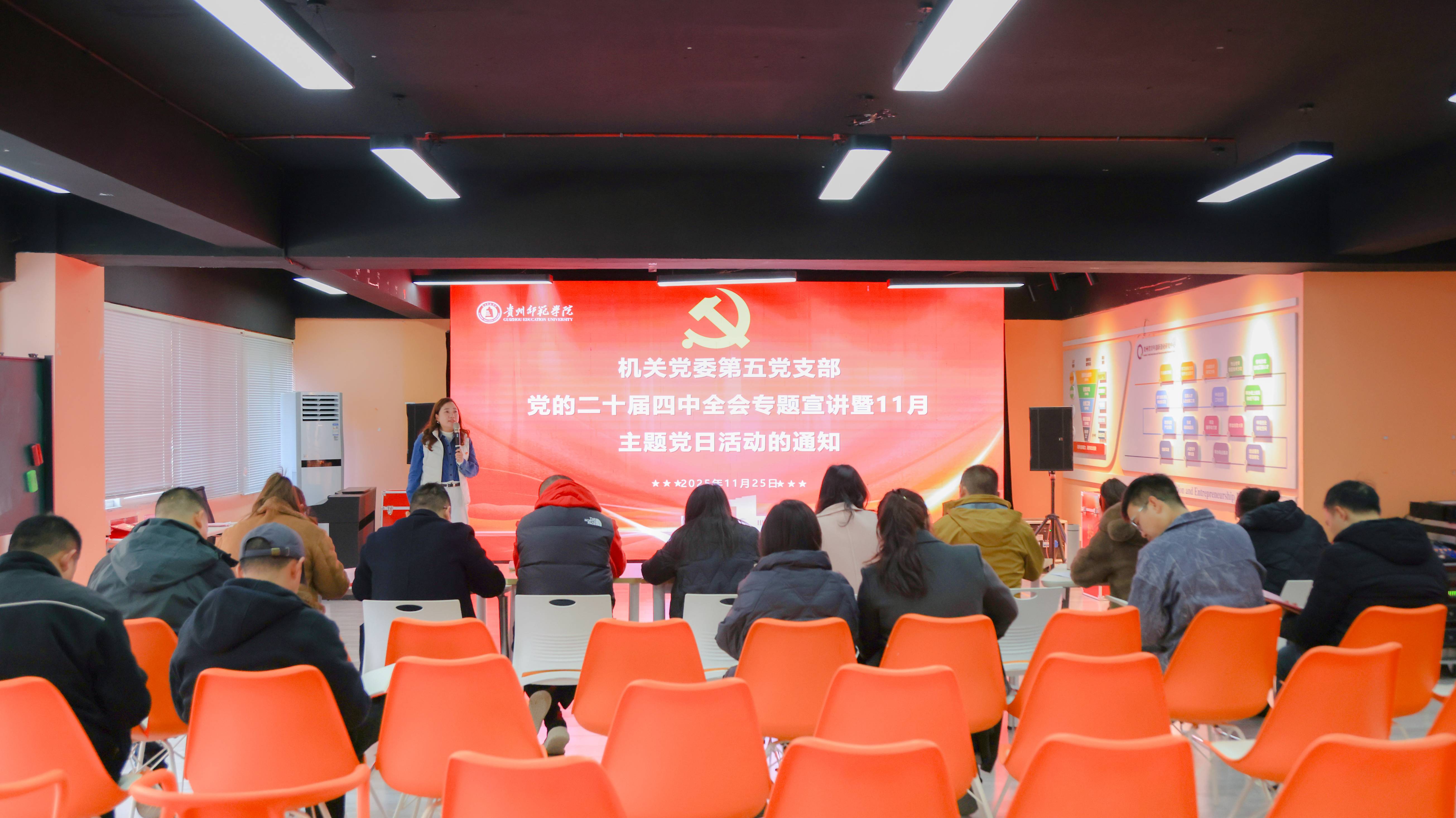 为深入学习贯彻党的二十届四中全会精神,持续推进党史学习教育常态化长效化,进一步增强党组织的凝聚力和战斗力。11月25日上午,机关党委第五党支部在宁静楼贵州省青创中心活动室开展“深学全会精神 砥砺初心使命 立足岗位建功”为主题的党的二十届四中全会专题宣讲暨11月主题党日活动。支部全体在家党员参加,活动由支部书记周煜主持。