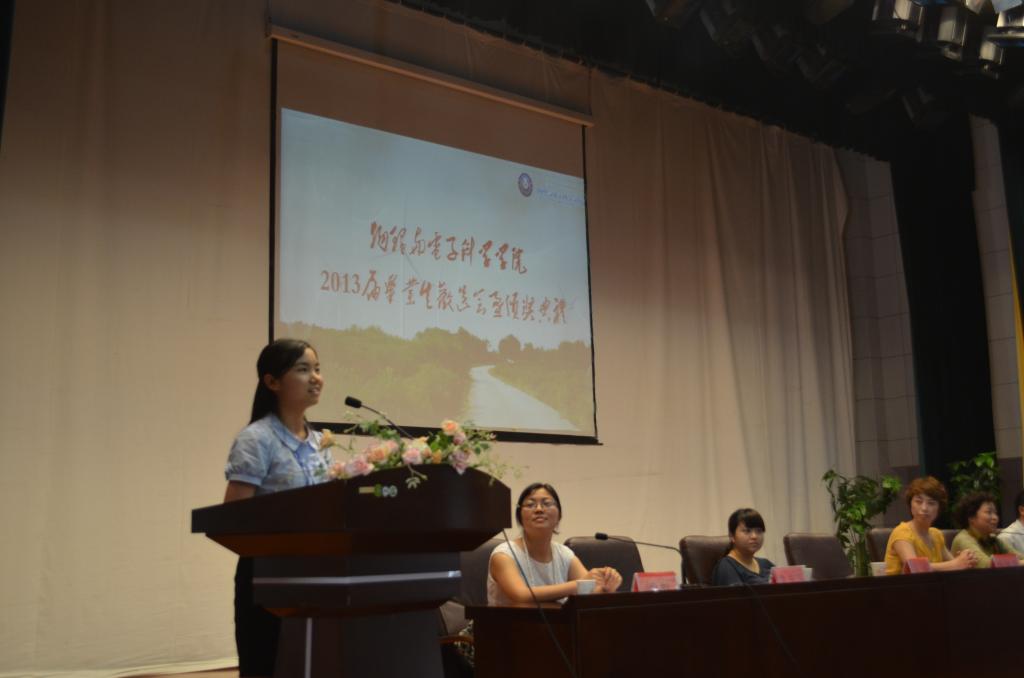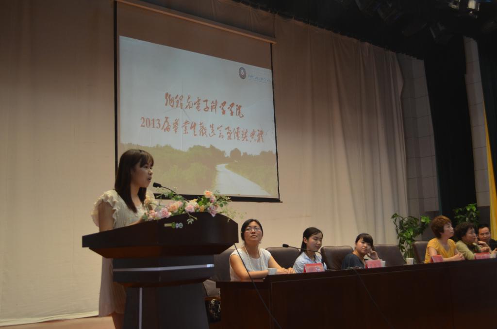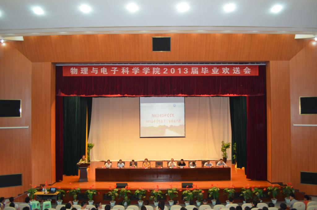 我校物电学院2013届毕业生欢送会于2013年6月7日下午2点在我校演播厅隆重举行。物电学院党委书记王平瑞、院长周筑文、院党委副书记何毅、副院长熊德勇、我校学工部副部长刘红玲、体育学院党委书记黄天明、办公室负责人习心峰、毕业班辅导员王钰、楚亚萍、王炳杰老师和教师代表、各班辅导员以及2013届全体毕业生和各班学生代表参加了毕业典礼。