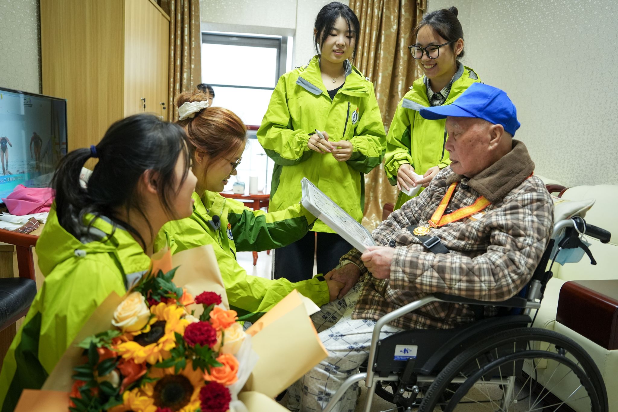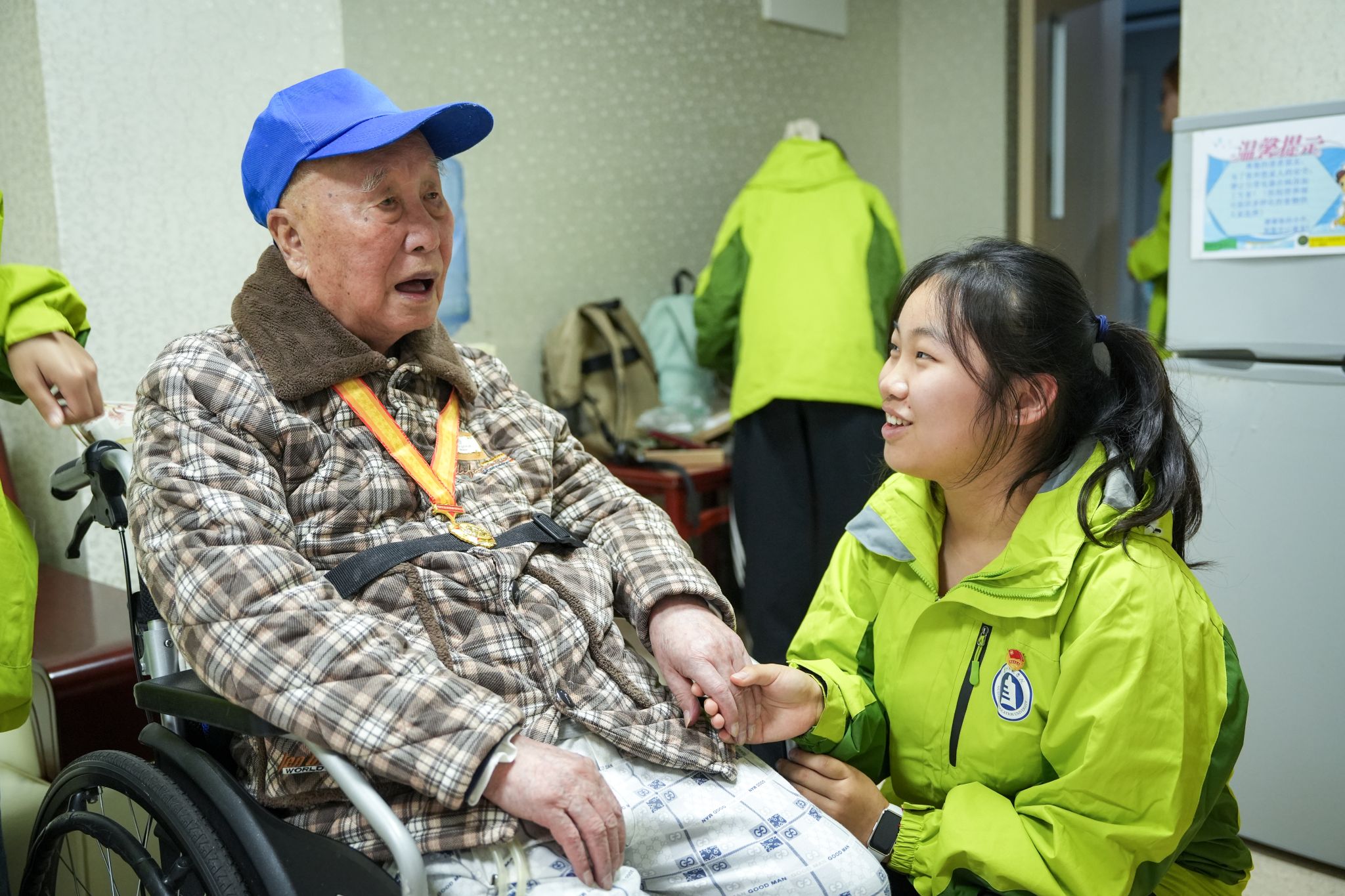 告别时的牵手格外动容。志愿者吴雪娟伸手与爷爷道别,触到的是一双热乎乎的手掌。这掌心的温度,是岁月的印记,是无声的共鸣,更是跨越年龄的精神传承,让她久久难以忘怀。