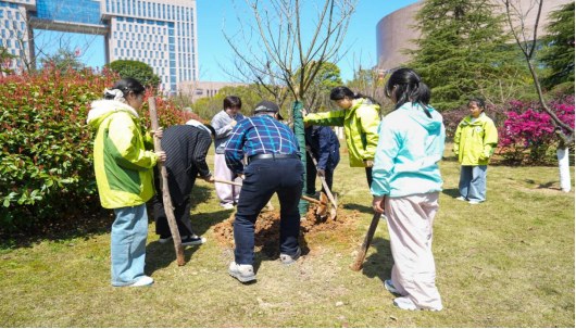 生物科学学院党委书记孙秀华、院长任翠娟、党委副书记王珏、副院长孟泽彬全程参与活动,并带领学院师生发挥专业特长,科学规范开展种植。后勤处处长干正洋、副处长高强、能源绿化科全体老师及航天物业相关负责人也来到现场,与师生一同参与植树。校团委副书记寇源组织团员青年志愿者积极投身劳动,以朝气蓬勃的干劲诠释新时代青年的责任与担当。