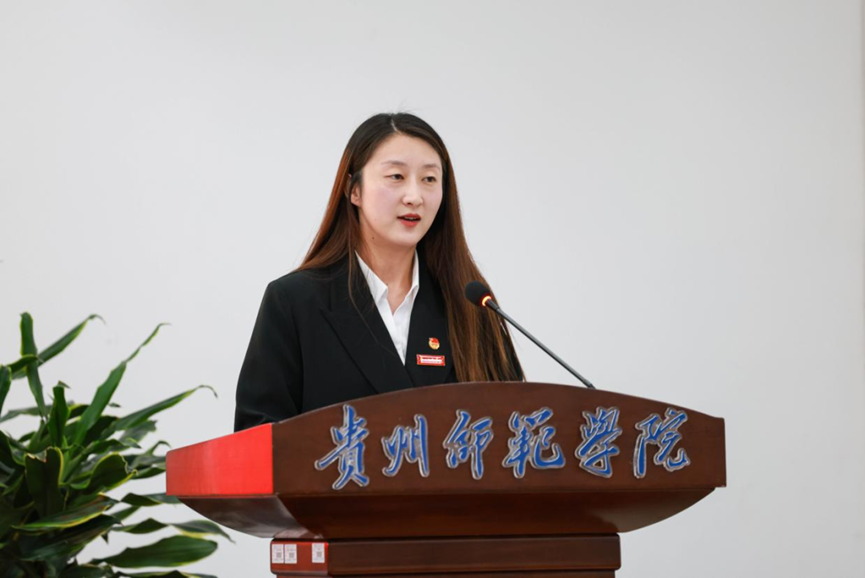 贵州师范学院第六届学生会主席团成员雷智利代表第六届学生会向大会作主题为“笃行逐新梦 青春建新功 团结引领全校学生在建设特色鲜明优势突出区域一流的应用型大学奋进征程中挺膺担当”的工作报告,对过去一年学生会的工作成效进行了回顾和总结,并提出了下一届工作的重点任务和举措。