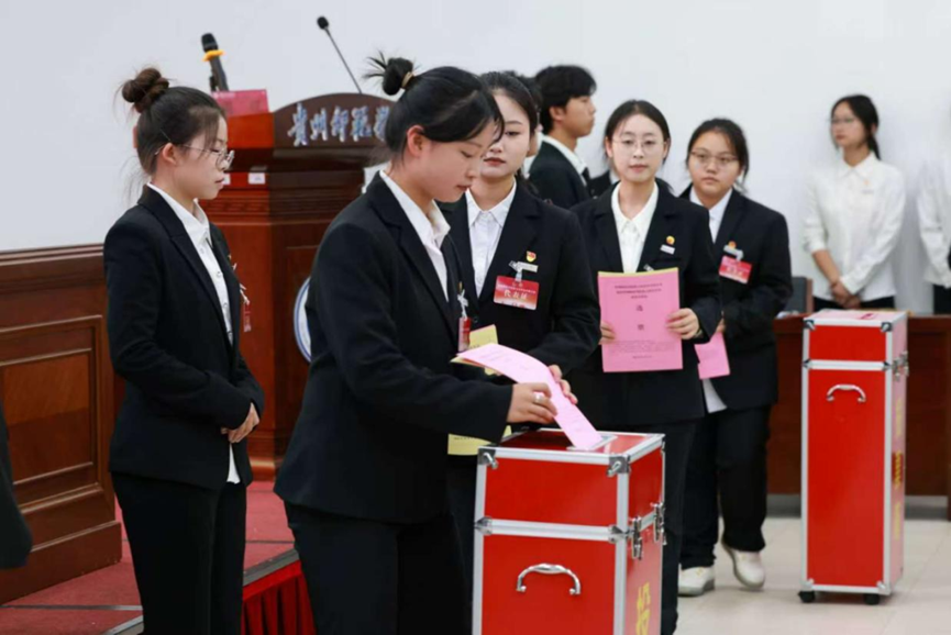 经分团讨论和审议,大会表决通过了《贵州师范学院第七次学生代表大会关于第六届学生会工作报告的决议》《贵州师范学院学生会章程(2025修正案)的决议》,以无记名投票的方式差额选举产生了由吴泽辉、张英翠、高敏和梁莉4名同学组成的第七届学生会主席团;由马珍洁等19名同学组成的第七届学生会委员会。